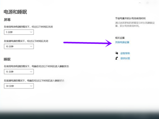2、点击电池和睡眠,再点击其他电源设置。