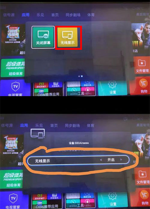 2、点击并进入【无线显示】,按遥控器【OK】确定键开启。