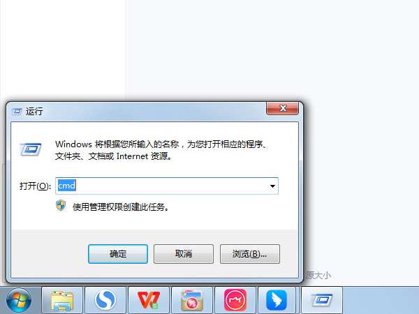 1、同时按下Win+R键,在运行界面输入cmd并点击确定。