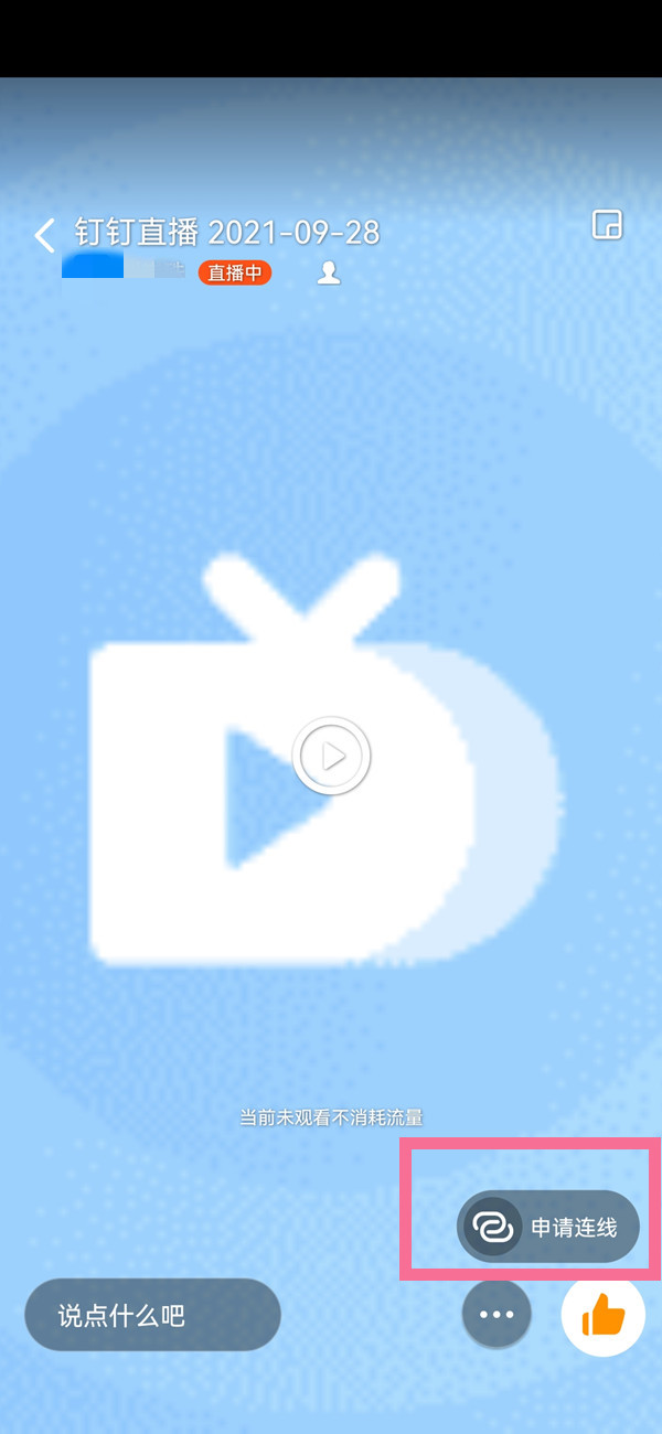 1、进入钉钉直播课堂后,点击右下角的【申请连线】。