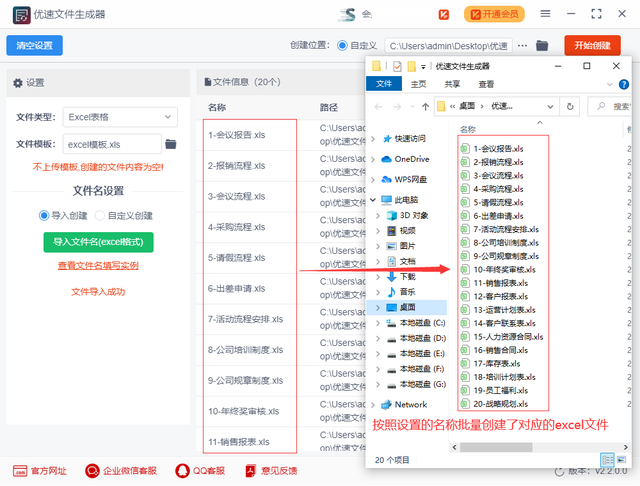 需要借助的工具软件:优速文件生成器