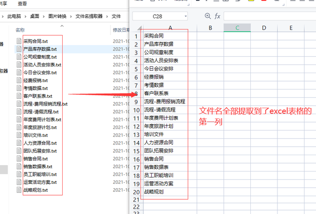 步骤4,打开刚刚导出的excel文件可以看到,所有文件的名称全部提取到了excel表格的第一列里。