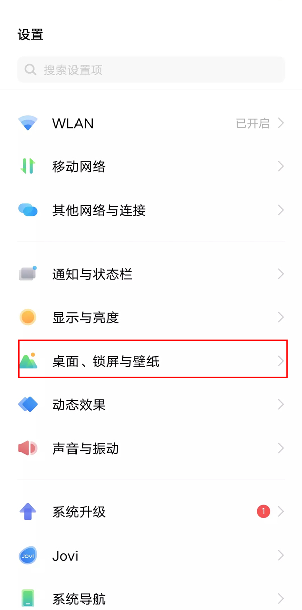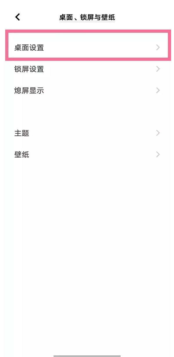 1、打开手机设置,点击【桌面、锁屏与壁纸】。
