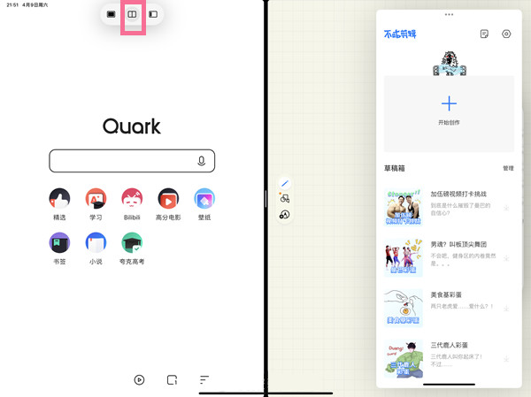 2、点击分屏图标,再打开另一个分屏应用即可。