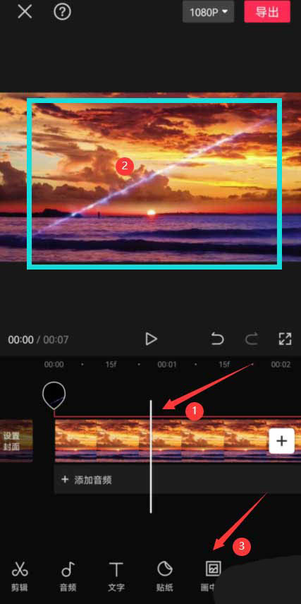 将时间轴拖动到裂缝刚刚显示的位置,然后点击底部的画中画按钮,见下图。