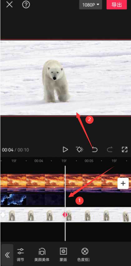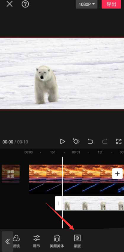 选中北极熊素材,点击底部的蒙版按钮,见下图。