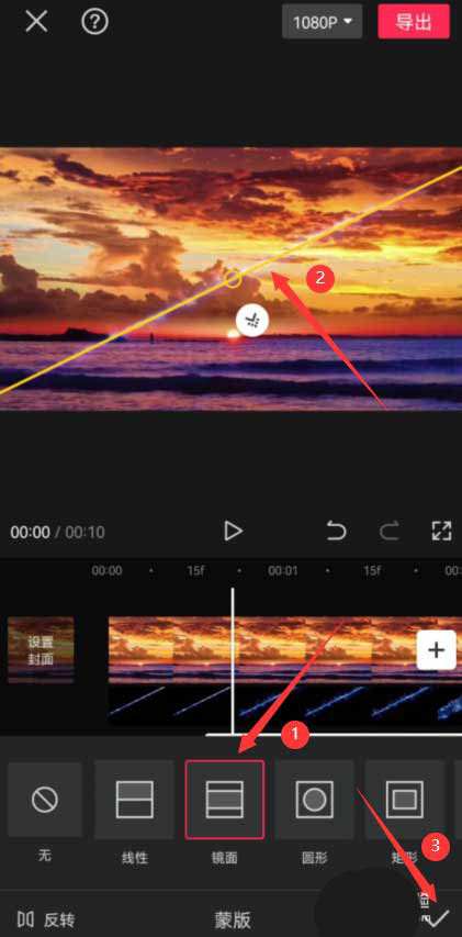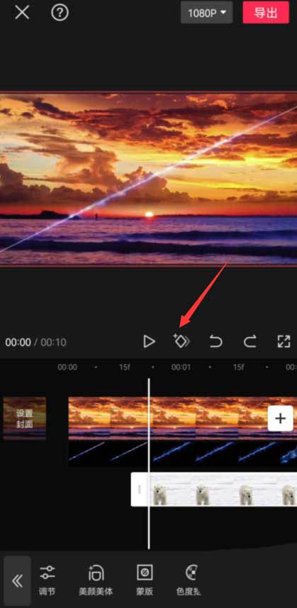 将时间轴移动到裂缝变大的位置,点击底部的蒙版按钮,见下图。