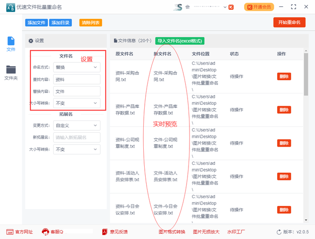 步骤5,从上面的案例结果可以看到,软件成功的将文件名前缀“资料”全部改成了“文件”。