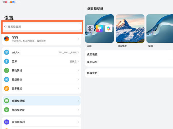 1、点击平板设置后,点击搜索框。