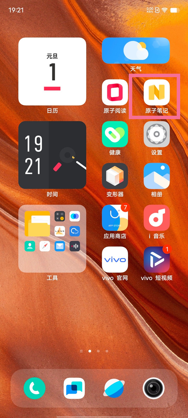 vivo手机的备忘录功能使用的是原子笔记APP,可以直接在手机桌面找到APP图标,也可以通过桌面搜索快速找到。