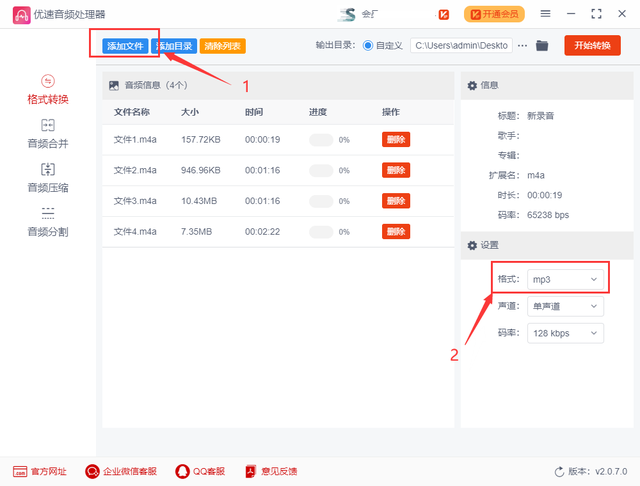 m4a转成mp3操作步骤: