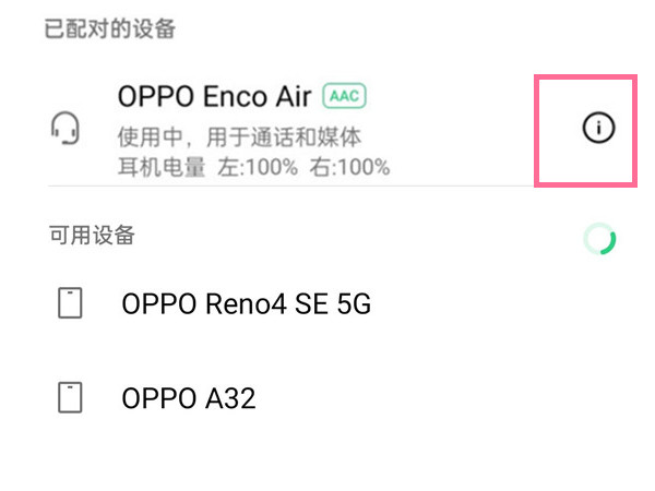 2、点击已配对耳机旁边的图标即可进入耳机设置。