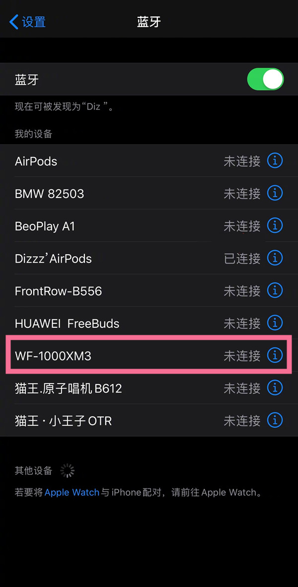 2、进入手机蓝牙设置,开启蓝牙并选择配对列表中的设备名称进行连接即可。