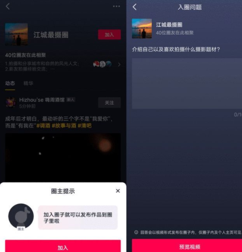 不过用户在加入相应的圈子当中,是需要回答问题以及拍摄与圈子所相符内容的照片的短视频的,如果有特别的好的素材还会被设置为该圈子的精华首页进行展示,圈子好友还可以进行点赞评论。