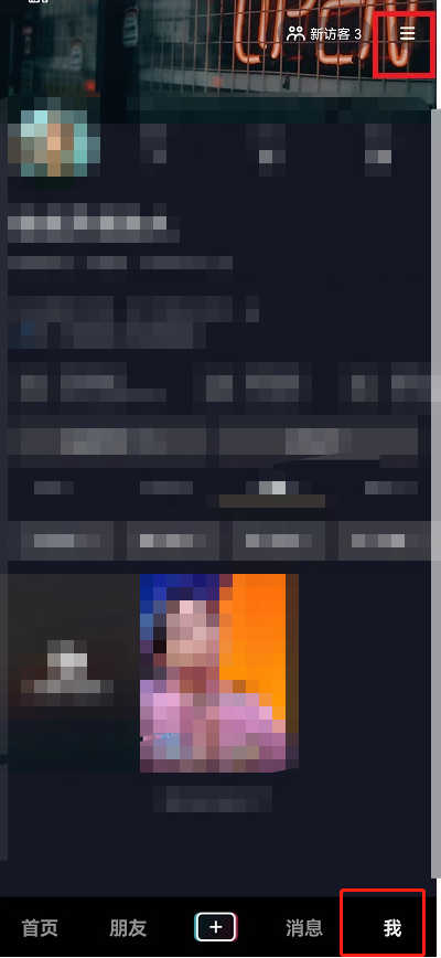 1、首先进入抖音我的页面点击右上角【三】。