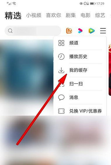 第三步:弹出的选项栏选择【我的缓存】。