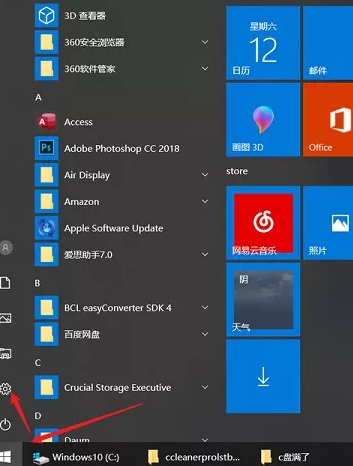 1、Win10自带了缓存清理功能,我们单机桌面左下角开始键,点击小齿轮进入设置。