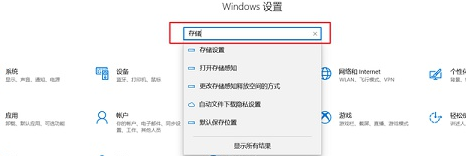 2、在设置中输入“存储设置”查找并打开。