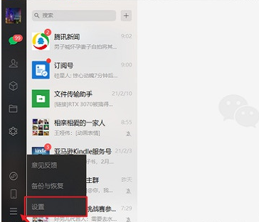 1、一些常用软件的缓存路径都会默认保存在c盘,例如微信,我们可以打开微信左下角的“更多”-选择“设置”。