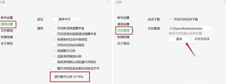 2、在“通用设置”中就可以看到聊天记录的缓存了,可以将这些缓存删除来节省空间,也可以将聊天记录手动备份在其他盘。