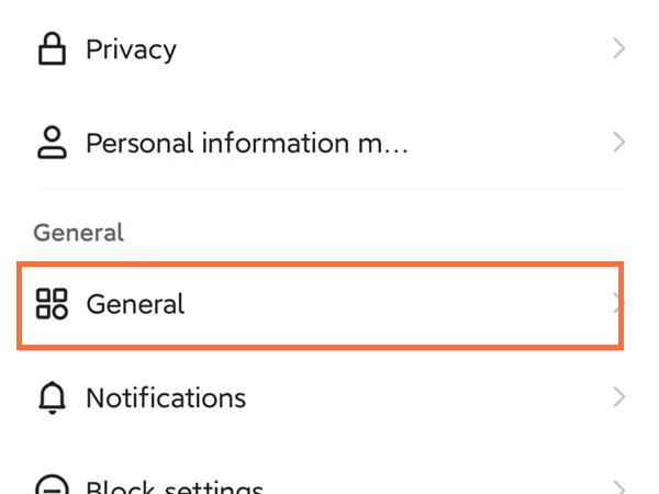 2、点击general。