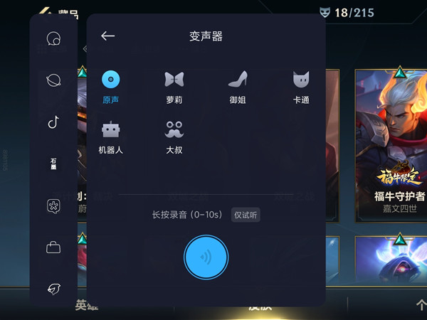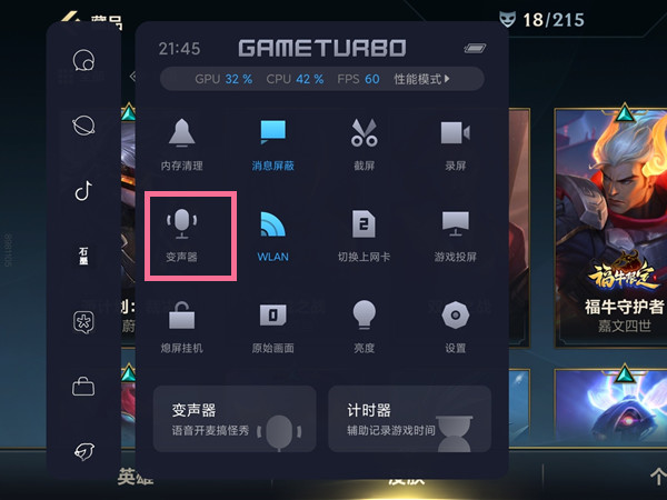 1、在游戏界面从屏幕侧边顶部变化打开游戏工具箱,找到【变声器】。
