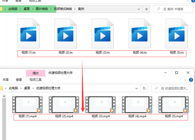 步骤4,我们从上面的案例结果可以看到,所有的ts视频文件全部转成了mp4格式。