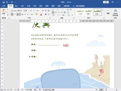 3、把光标放置到标题文字后,按Tab键即可输入一条到标尺位置的下划线。
