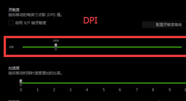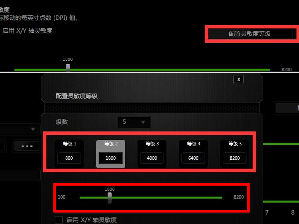 3、也可点击【配置灵敏度等级】,选择适合的等级后,调整灵敏度滑块。