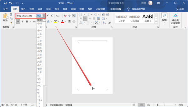 5、如果需要调整页码显示的大小,可以选中页码后在【开始】选项卡下方修改大小。