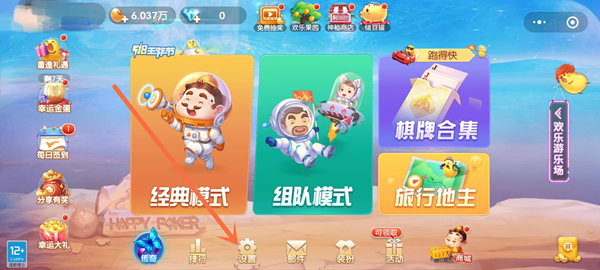1、打开微信App,进入欢乐斗地主小程序,再点击设置。