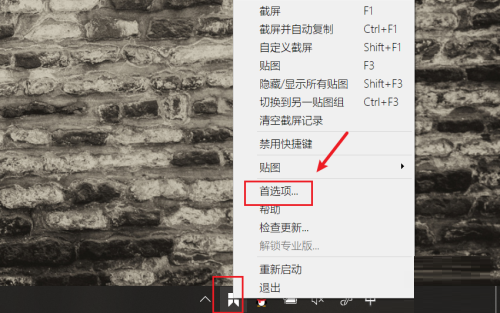 第二步:右键电脑状态栏的snipaste图标,选择点击首选项菜单(如图所示)