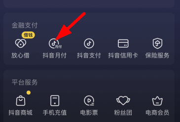 4、点击“抖音月付”进入之后,申请开通抖音月付额度,根据步骤提示操作,完善好相关资料信息然后提交审核;