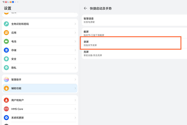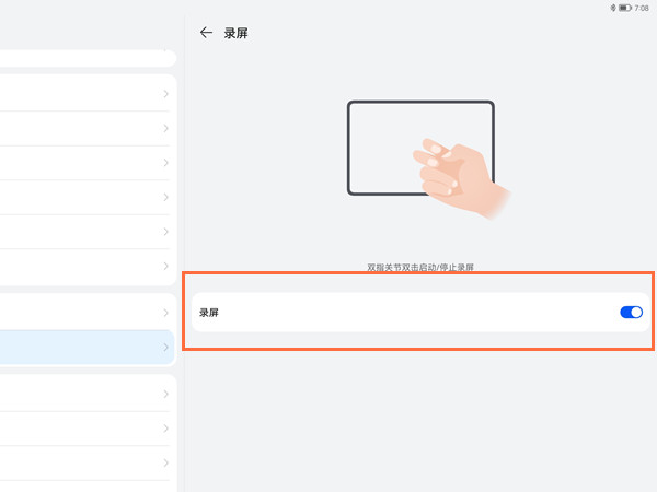 3、开启【录屏】功能,使用双指指关节稍微用力并连续快速地双击屏幕可启动录屏。