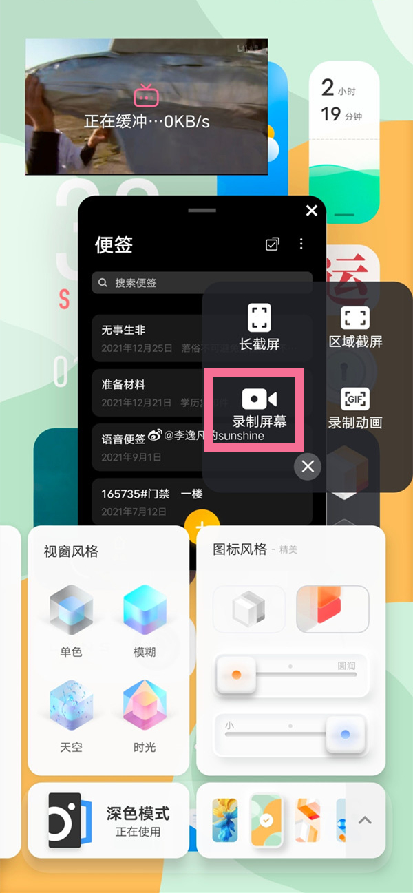 2、在弹出的选项中,点击【录制屏幕】即可开始录屏。
