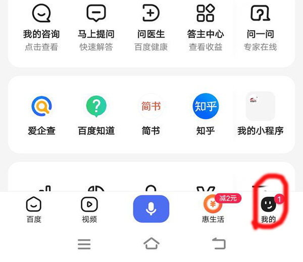 1、点击百度APP右下角“我的”按钮,会显示账号的主页。