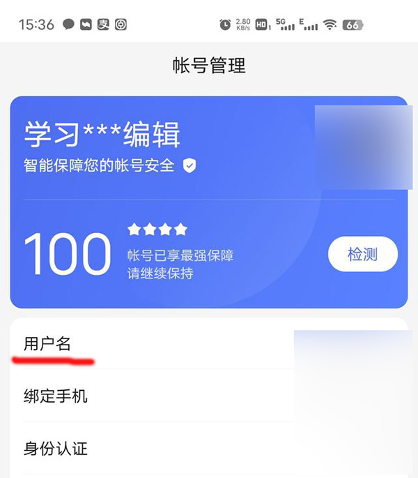 3、点击第一行“账号管理”,会弹出来一个新的菜单,这个菜单是账号信息页面,里面第一步就是“用户名”。