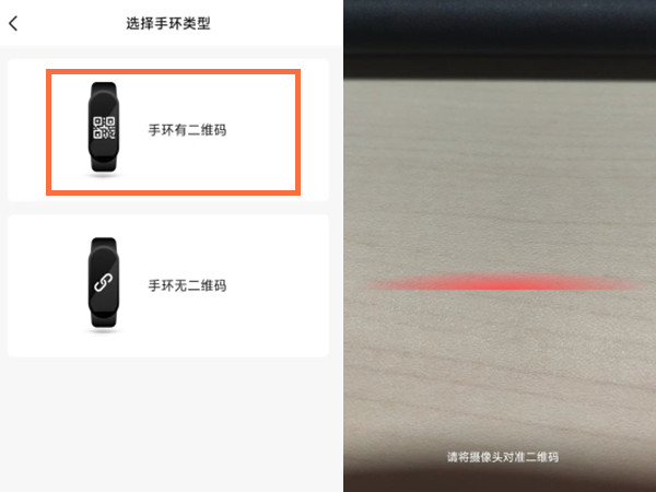 3、然后将手机摄像头对准手环屏幕二维码进行扫描,点击勾号键确定绑定。