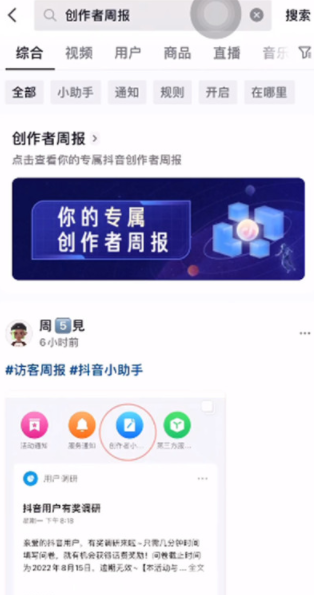 需要注意的是抖音创作者的这个周报并不是每个人都有的,只有是这个抖音的创作人才能看得到,所以要看你是不是抖音创作人,并不是每个小伙伴都有的。