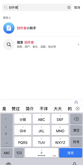 2、如果列表中没有“创作者小助手”的话,点击上方的“搜索”,输入“创作者小助手”就可以进入其中。