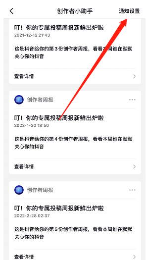 如果你是创作人的话,在开通了这个功能之后就会给你推送的,如果没有推送的话,大家可以看一下是否开启了这个功能: