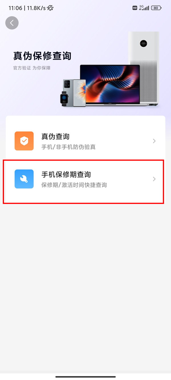 3、点击【手机保修期查询】。