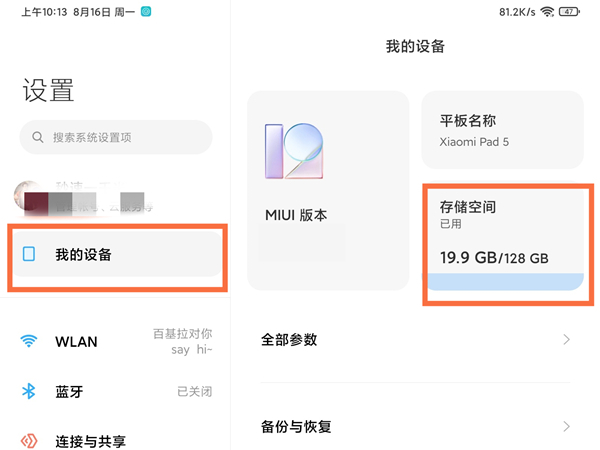 小米平板5pro 12.4不支持查看运行内存,只支持查看存储内存,查看存储内存具体操作步骤如下: