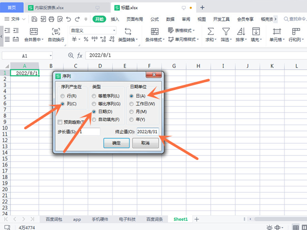 2、选择好序列参数后,在终止值一栏输入31号的具体日期,点击确定即可。