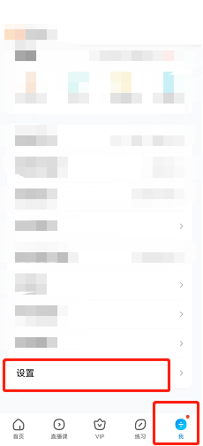 第二步:切换到【我】页签,点击【设置】进入(如图所示)。