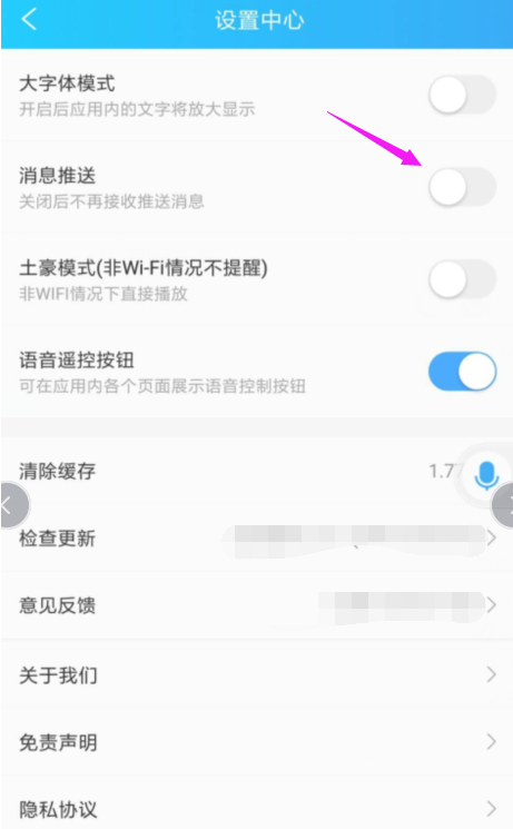第四步:找到【消息推送】点击按钮关闭即可,如图。