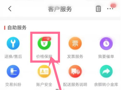 2、在客户服务页面点击【价格保护】,点击【一键价保】即可申请保价服务。