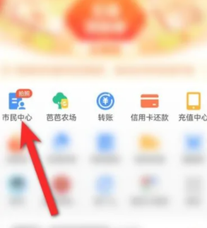 1,首先打开支付宝在首页点击市民中心进入。