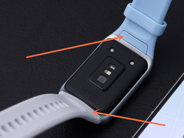 1、找到表盘背面表带与表盘衔接处长条的快拆按钮。