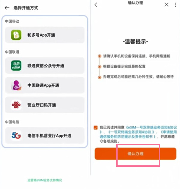 2、选择开通方式,并【确认办理】即可。
